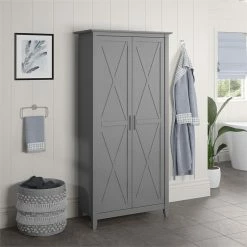 Promo โค๏ธ Bush Business Furniture Key West Bathroom Storage Cabinet With Doors In Cape Cod Gray – Engineered Wood ๐