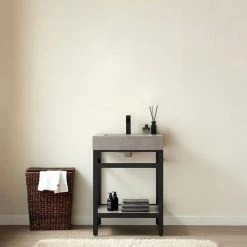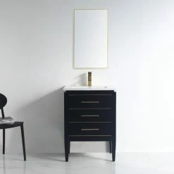 Coupon 🌟 Dowell K&B Supplies Grace 24″ Single Bathroom Vanity Set, Black With Brass Trim 😍
