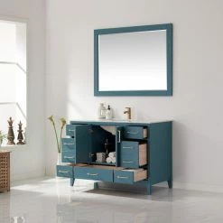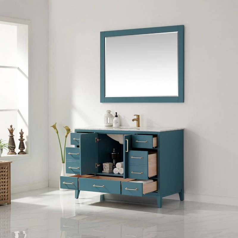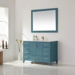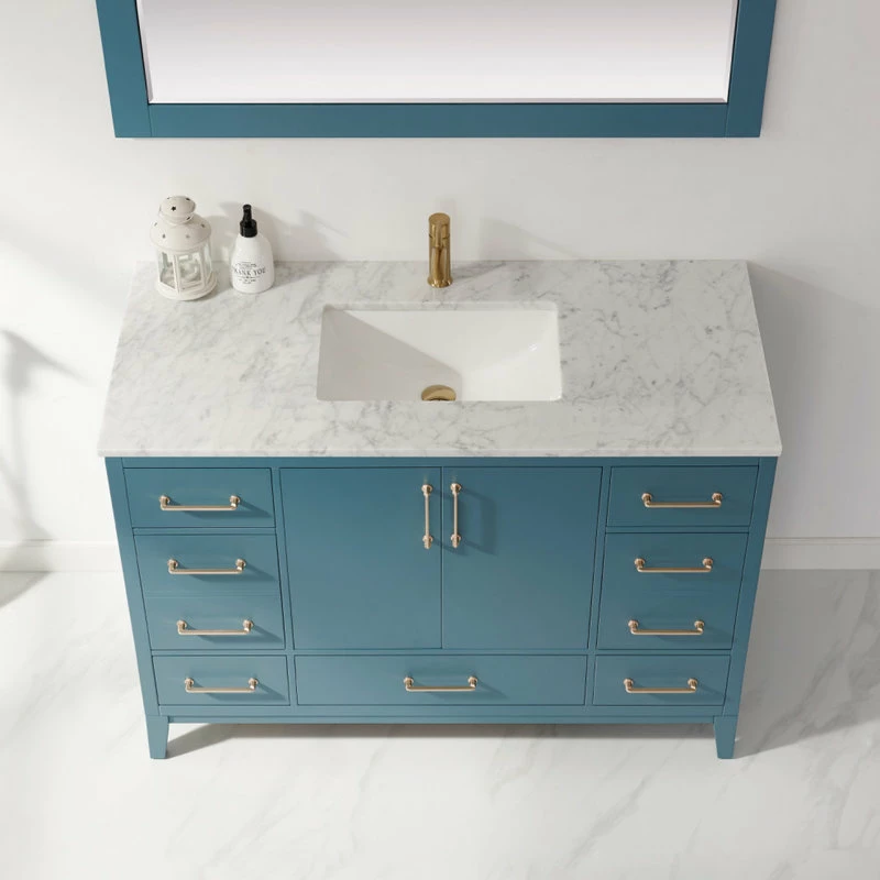 Clean, refined and elegant: that’s the essence of the Sutton Vanity. This beautiful, sturdy furnishing offers an eye-catching medley of finishes, from the gorgeous marble countertop and smooth cabinets to the golden-toned hardware. You’ll love all the storage inside”perfect for housing your favorite towels and other bathroom essentials.