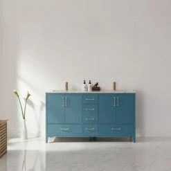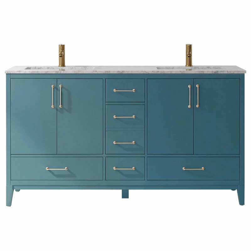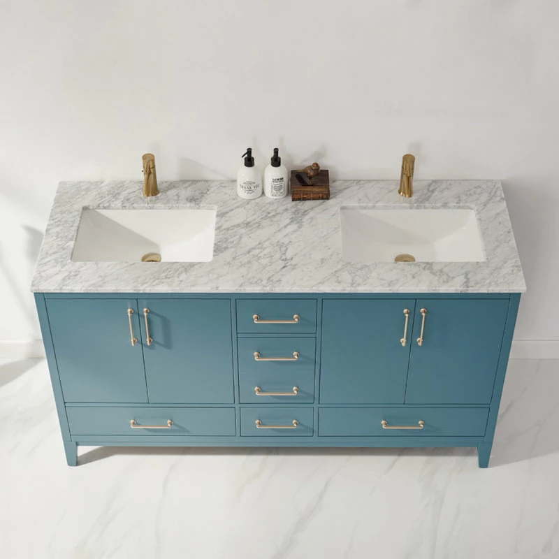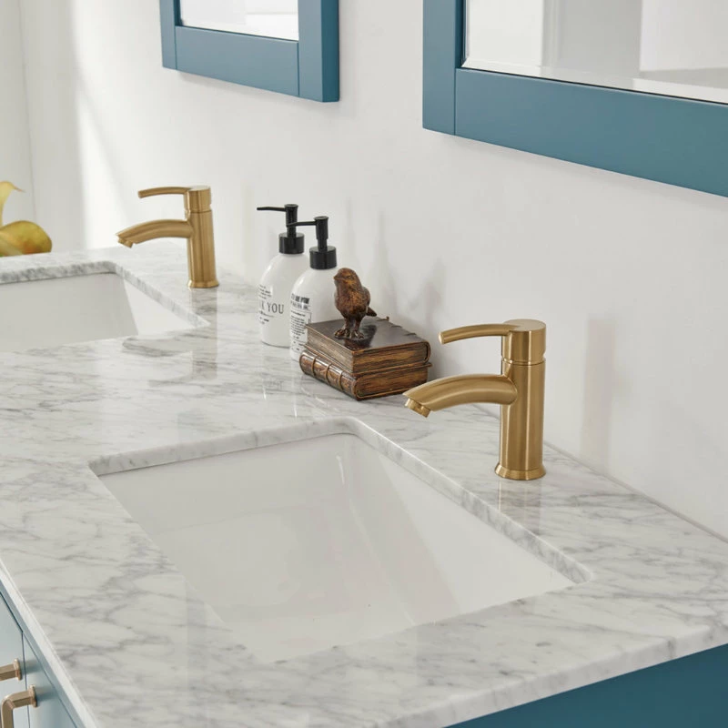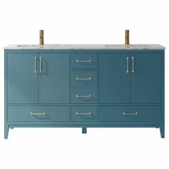 Clean, refined and elegant: that’s the essence of the Sutton Vanity. This beautiful, sturdy furnishing offers an eye-catching medley of finishes, from the gorgeous marble countertop and smooth cabinets to the golden-toned hardware. You’ll love all the storage inside”perfect for housing your favorite towels and other bathroom essentials.