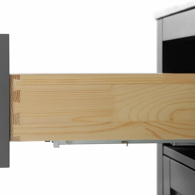 - Solid wood dovetailed drawer boxes (no dowels joinery, staples, plywood or MDF)