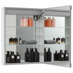 - Three-Mirror Design: allows you to use the mirror and access the contents of the medicine cabinet at the same time.