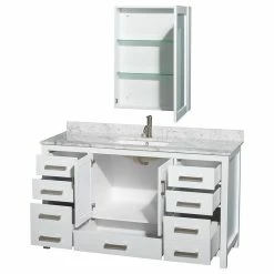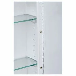 The Double-Sided Mirrored Doors and Mirrored Back Wall, Three-Mirror Design Allows You to Use the Mirror and Access the Contents of the Medicine Cabinet at the Same Time. 8mm Glass Shelves. These cabinets are constructed using anodized aluminum frames