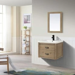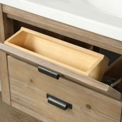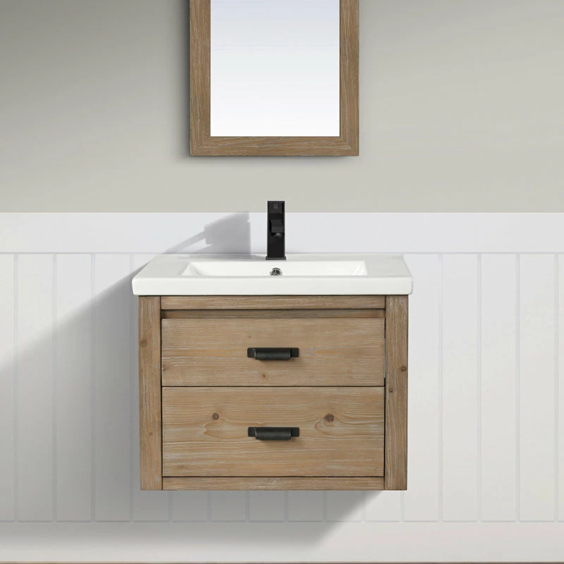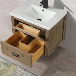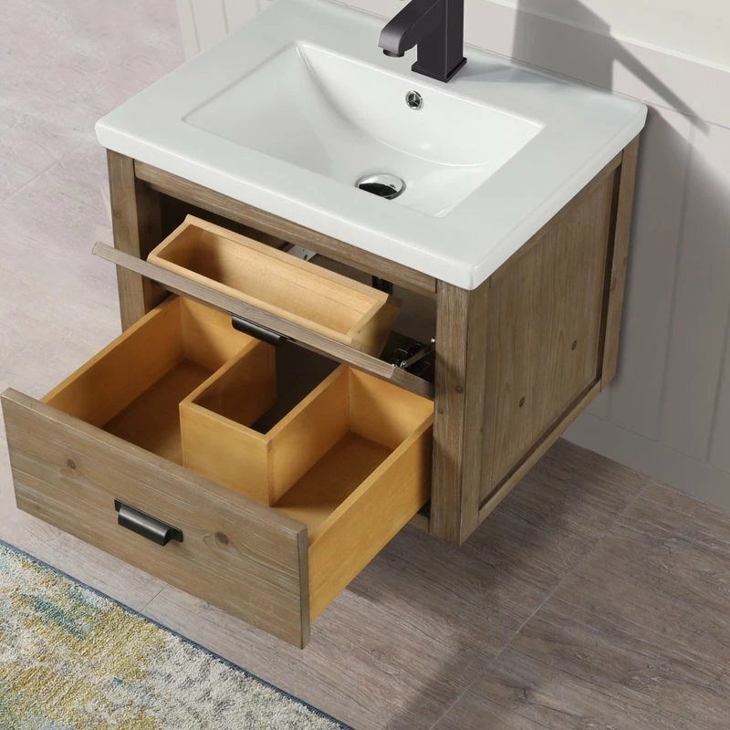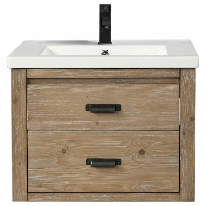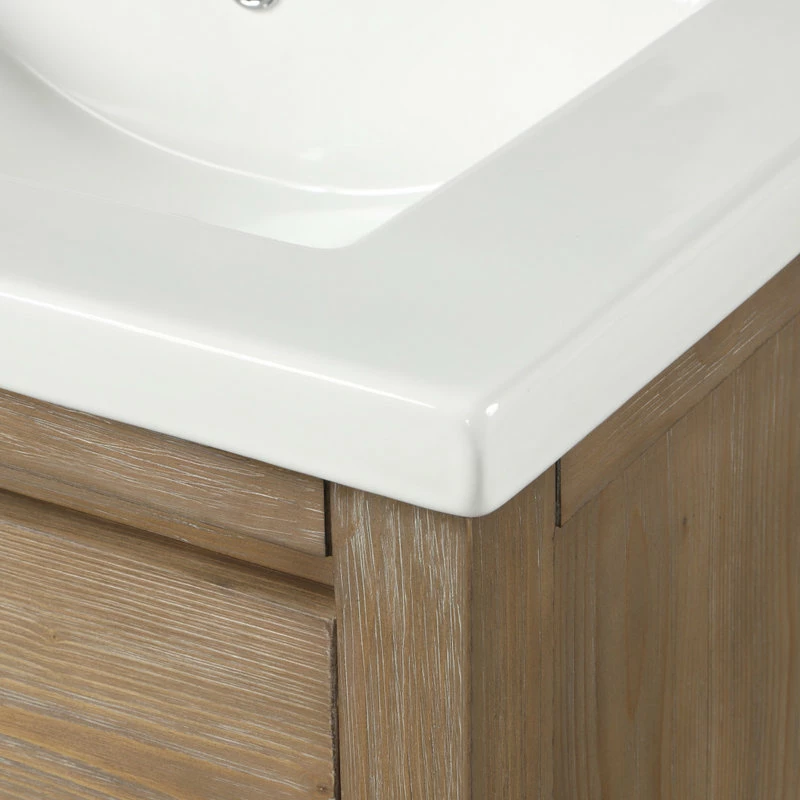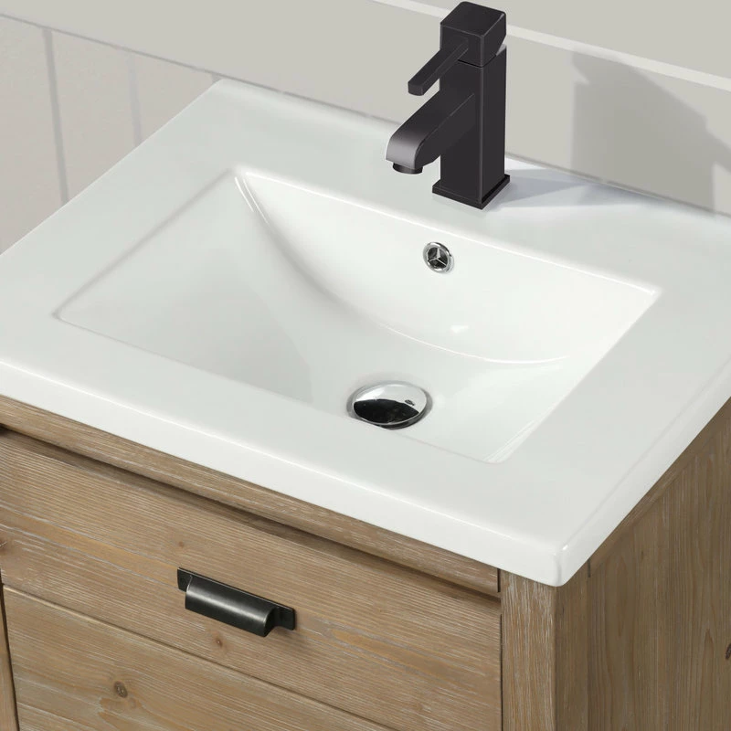 The 24″ Kane single sink bathroom vanity will be the centerpiece of your bathroom remodel. Skillfully constructed of solid wood to last a lifetime. Wood is skillfully finished with raised grain to give a distressed and reclaim wood look. One solid wood dovetail drawer with full extension glides gives you all the necessary storage room for your daily toiletries, coupled with a integrated ceramic countertop.