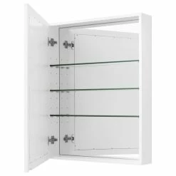 - 1 soft-close door and 3 glass shelves with interior mirrored backing