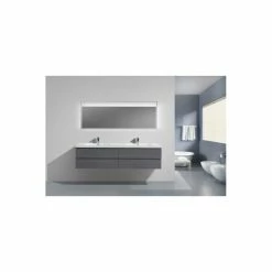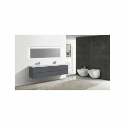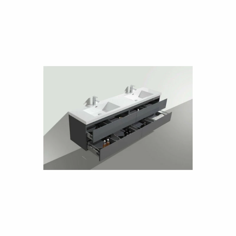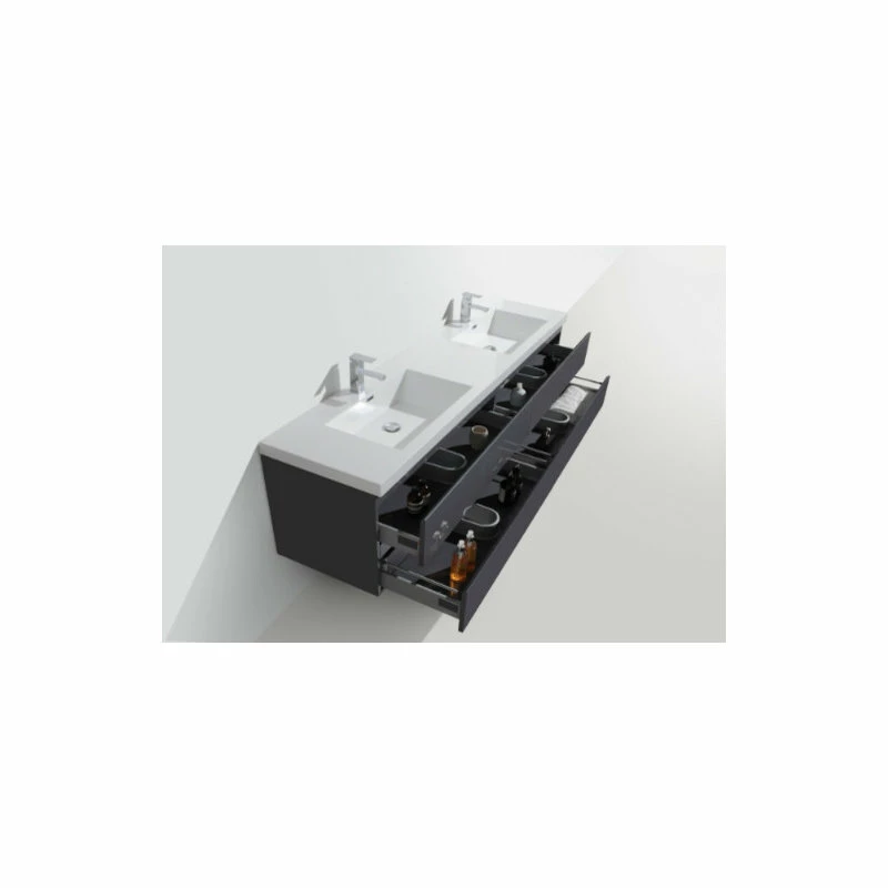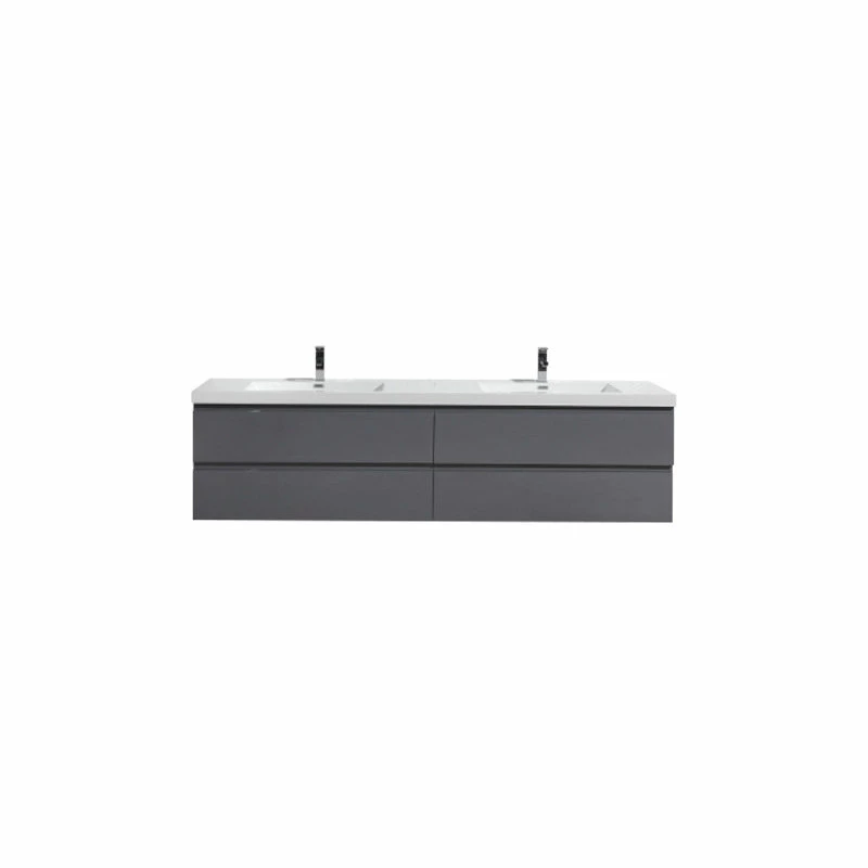 Instantly give your bathroom a modern edge with the MOB Double Sink Bathroom Vanity Set. The wall-mounted design hovers above your floor, making even the smallest of bathrooms appear much more spacious. Crafted from moisture and water resistant marine veneer and outfitted with a reinforced acrylic countertop and sink, this vanity leaves a lasting impression by combining traditional ideals with modern forms.