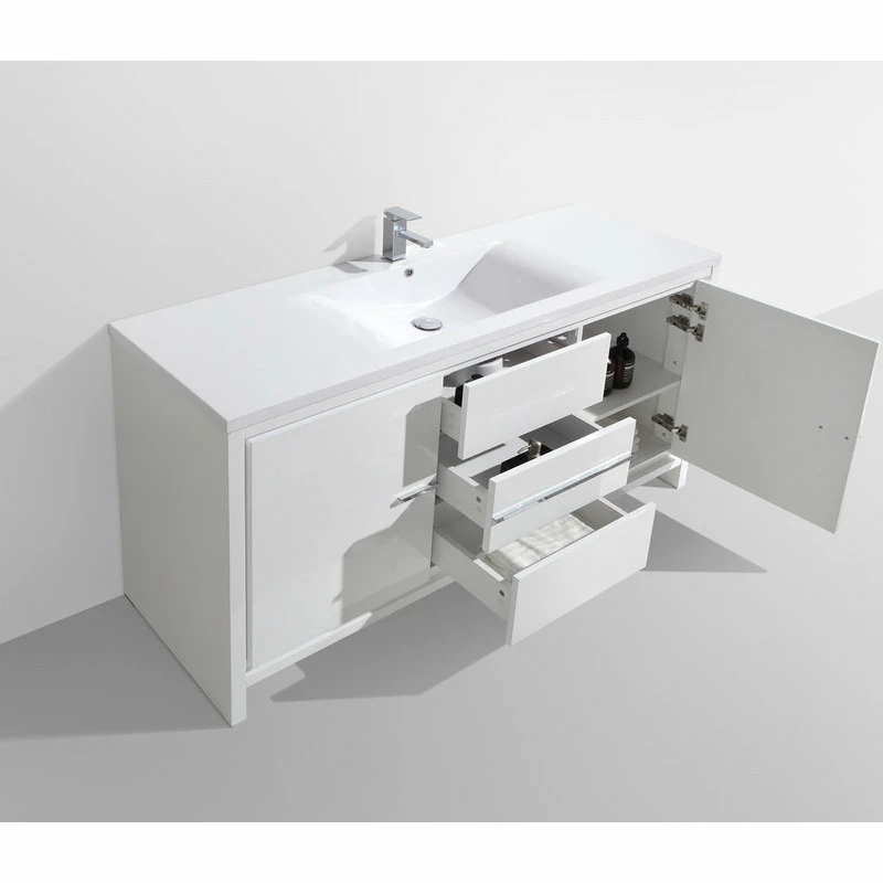 MOD 60 Inch Free Standing Modern Bathroom Vanity With Single Reinforced Acrylic Sink
