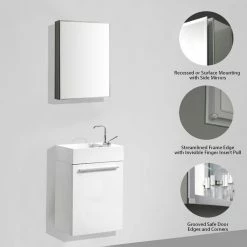 - Mirrors on both sides of the door, interior walls & both side panels, which makes it a bathroom cabinet with mirror on all sides.