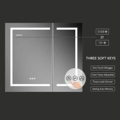 - THREE SOFT TOUCH SWITCH makes this ETL Certified LED Medicine Cabinet simple and easy to turn ON/OFF, adjust brightness and change color temperature.