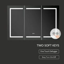- TWO SOFT TOUCH SWITCH makes this ETL Certified LED Medicine Cabinet simple and easy to turn ON/OFF and adjust defogger.