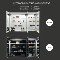 - BUILT-IN DEFOGGER means fogless makeup time is just one touch away. All these features make it the perfect led mirror medicine cabinet.