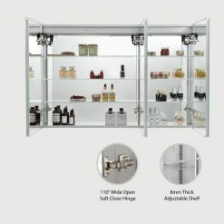 - High-end hardware brand DTC 110 degree wide-open soft close hinges and provides strong support for large medicine cabinet.