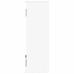 This collection brings space saving storage to your bathroom. The classic design compliments almost any bathroom decor. Wood construction with a white, painted finish, these pieces are designed for both style and functionality. Store toiletries, stacked washcloths, rolled towels or anything you need to keep organized. The wall mounted storage cabinet includes two adjustable interior shelves and a towel bar for maximizing space. Bath collection is moisture resistant.