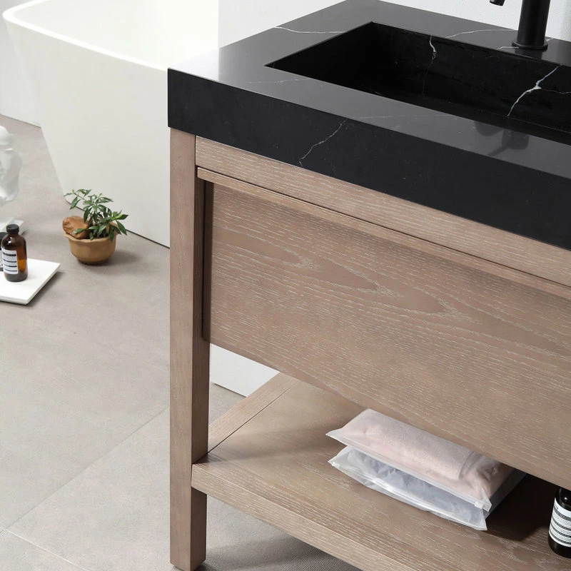 - Vanity Base Materials: 9 Layers of High Density Hardwood; 15mm of Thickness; Water-resistance; Splitting Resistance and More Stability & Strength.
