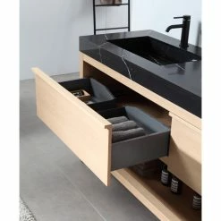 - Vanity Base Materials: 9 Layers of High Density Hardwood; 15mm of Thickness; Water-resistance; Splitting Resistance and More Stability & Strength.