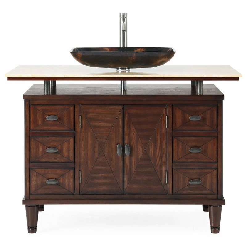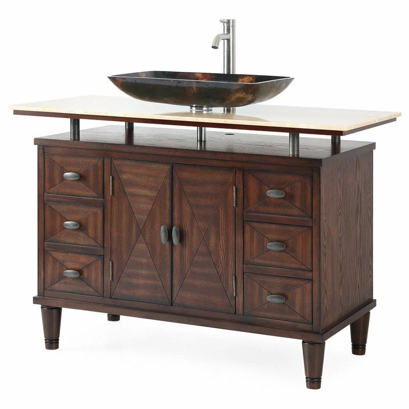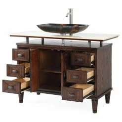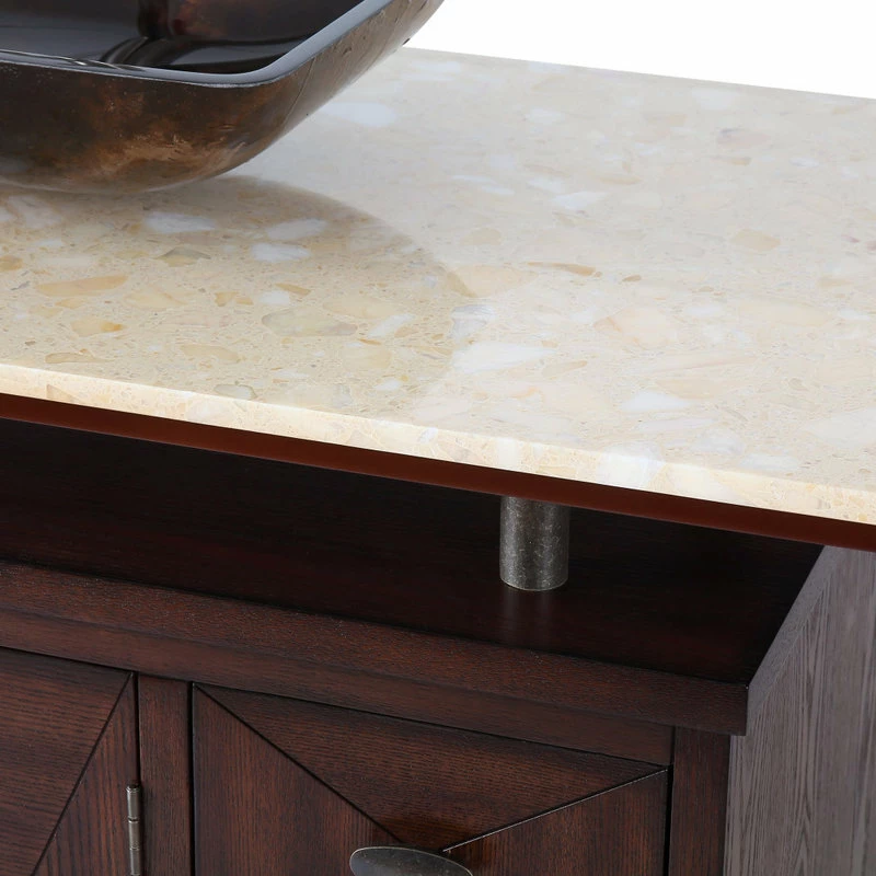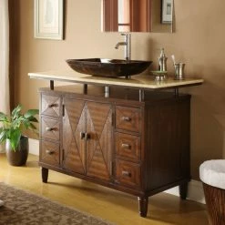 This 48″ vessel sink Verdana sink cabinet which is the sleekest, the most colorful and the most impressive among the entire collection of vanities we carry. Its sole purpose is to complement many of today’s modern bathroom decors. This bathroom vanity features durable wood construction with a yellow cultured marble countertop.