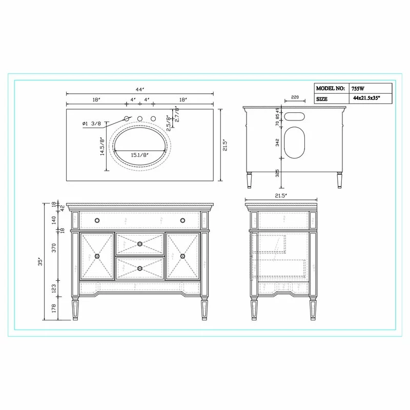 Dimensions: 44×21.75×35.25″H. Approx.