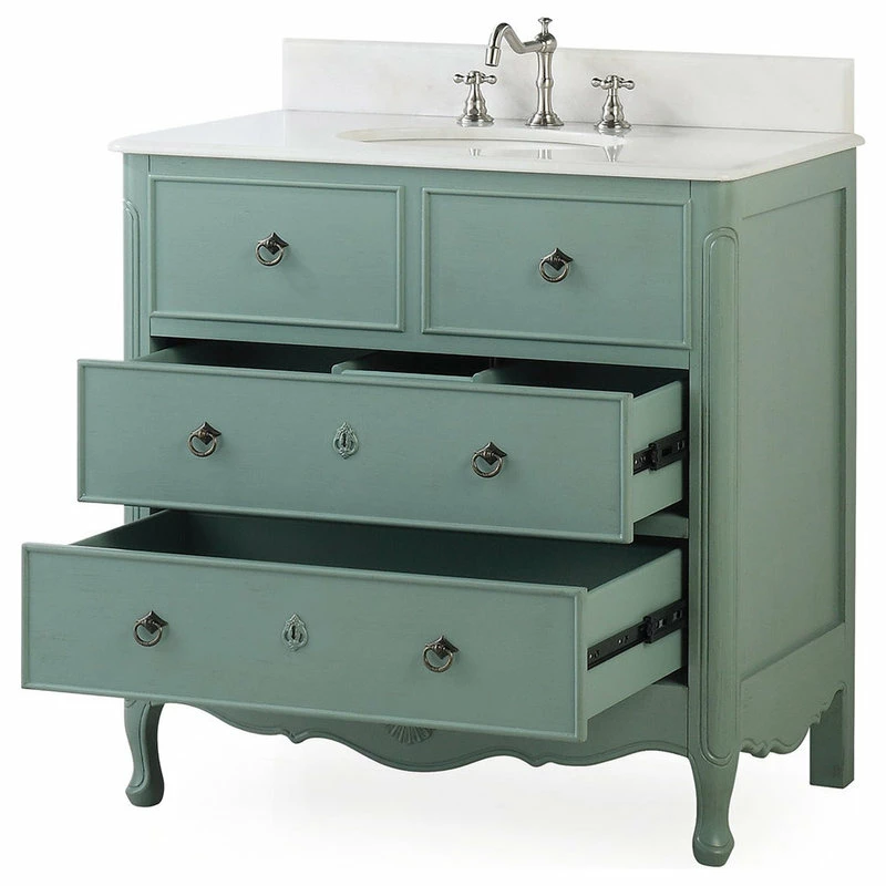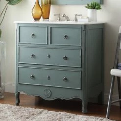 The vintage-style Daleville with intricately carved details gives this vanity a distinctive touch. It is functional and graceful. Adding an antique finish also enhance the look. This graceful design with elegant bathroom vanity offers a look that will create a relaxing and soft touch in any home.