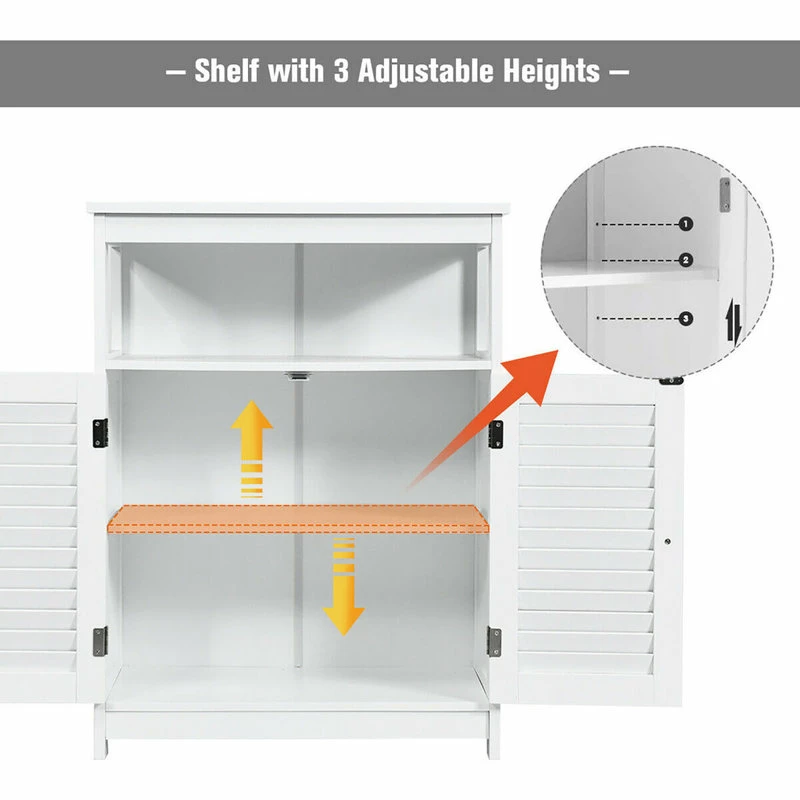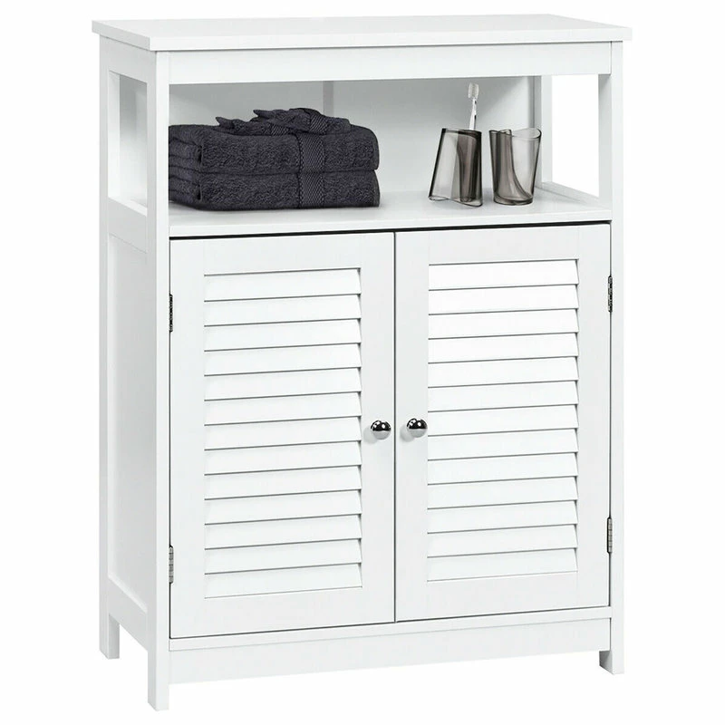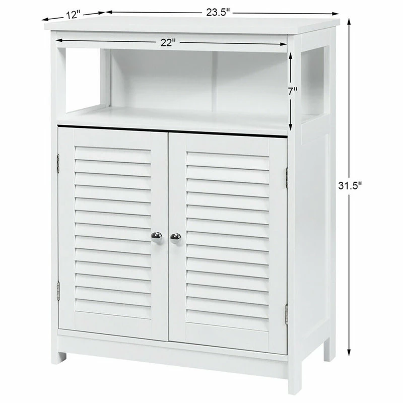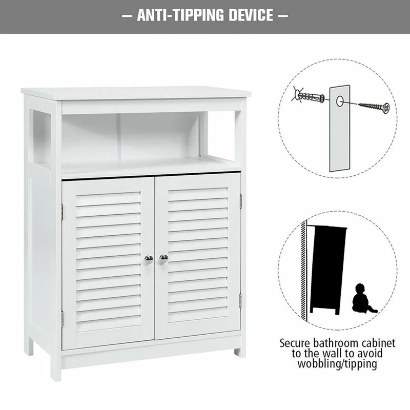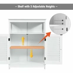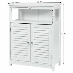 Made of high quality P2 MDF, our cabinet is sturdy and can be used for a long time. Stable structure allows this cabinet to stand firmly on the ground without shaking. With an open shelf and a large cabinet, you can store items as needed to make your space tidy. The inner shelf can be adjusted, which is suitable for objects of different heights. In addition, with simple and modern design, our storage cabinet can easily match with any decoration style. Its an ideal storage solution for bathroom, living room, bedroom and hallway!