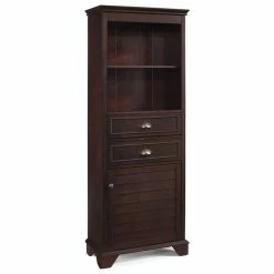 Is there anything more frustrating than a cluttered, disorganized bathroom? You know the feeling: You’re running late for work, trying to push through your morning ritual, and you realize that your bathroom has conspired against you. You can’t find the toothpaste, your eyeliner has dried up and — you guessed it — someone used the last of the toilet paper. Bring order to your chaos with the new Lydia collection from Crosley. At home in the tightest or most spacious bath, our Lydia bath cabinet was conceived to precisely maximize storage space, all in a style that embraces both traditional and contemporary design. Features include open storage with shelving, two spacious drawers, and a large bottom cabinet with louvered door.