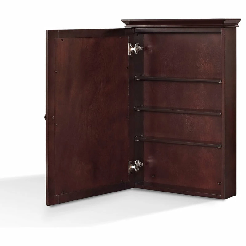 In a rich espresso finish, the Lydia bath cabinet minimizes clutter without compromising on style. Expertly crafted in solid hardwood and veneers, this wall-mountable design from the Crosley collection is fitted with a spacious mirrored door that conceals generous storage space. Flared molding and metal hardware give it a smart, updated look that adapts well to any transitional setting.