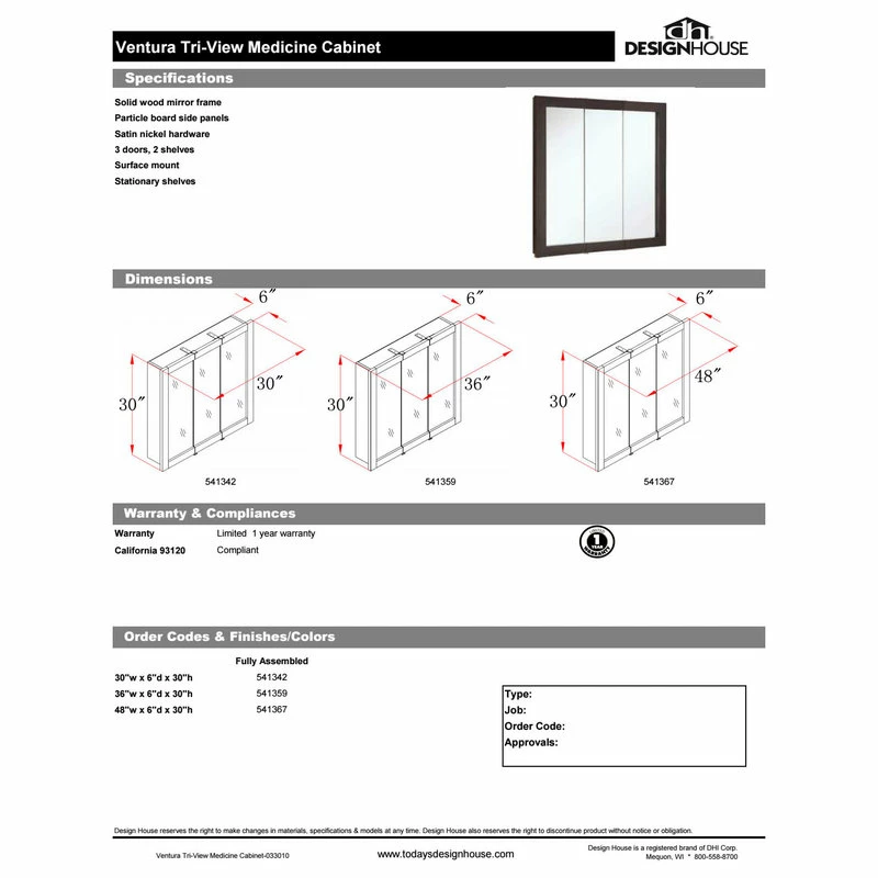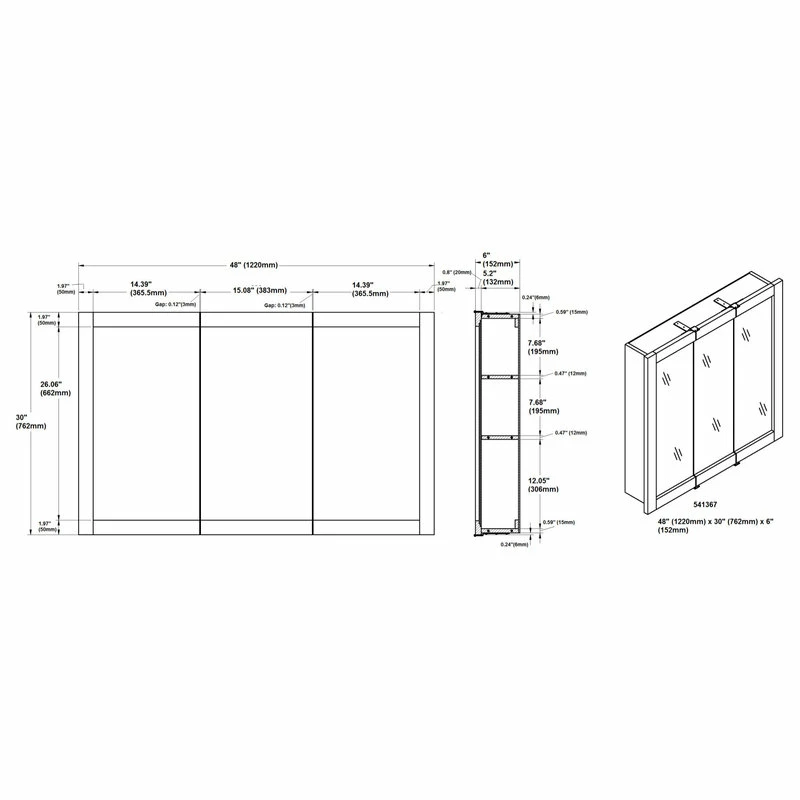 - 48″ Framed Triple Door Mirrored Medicine Cabinet from the Ventura Collection