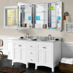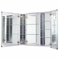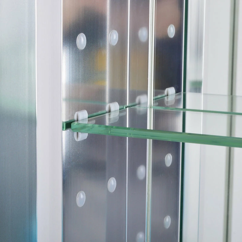 This aluminum medicine cabinet is rustproof, sturdy, and lighter than steel, making installation easier! It is made with tempered glass shelves that provide great organization of your bath needs. This is a great piece for your bathroom or your vanity to add style and functionality!