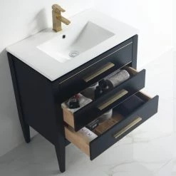 Be the first to review “Budget 🎁 Dowell K&B Supplies Grace 30″ Single Bathroom Vanity Set, Black With Brass Trim 🌟” Cancel reply