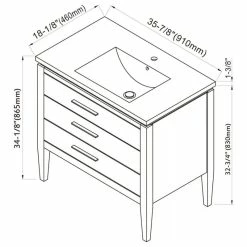 New ๐ Vinnova Granada Vanity With White Composite Stone Top, White, 36″, Without Mirror ๐