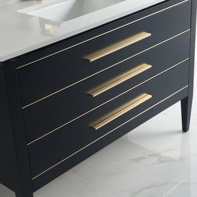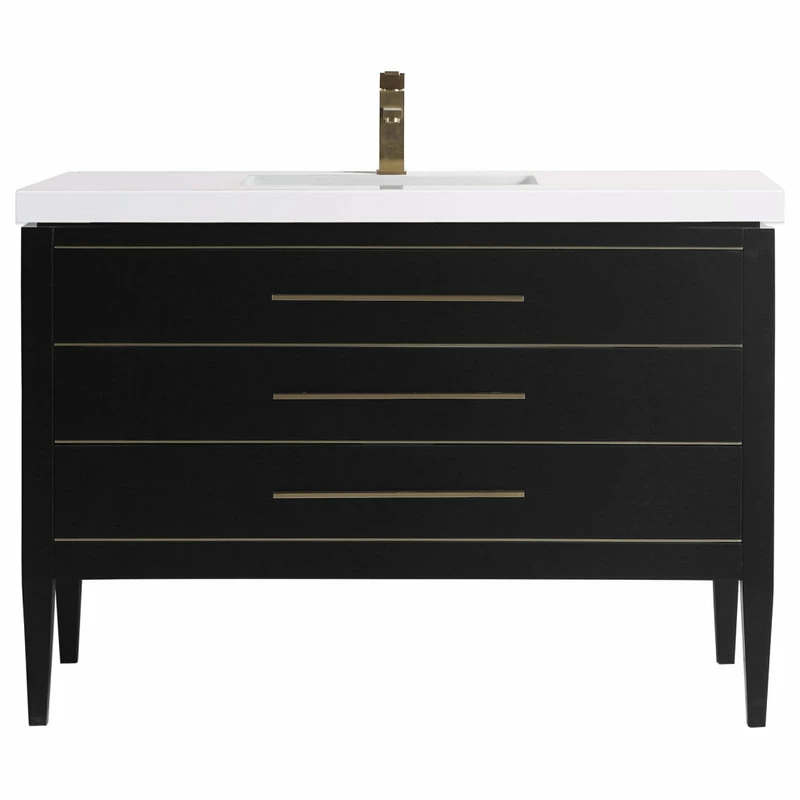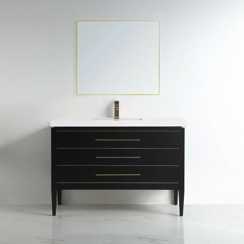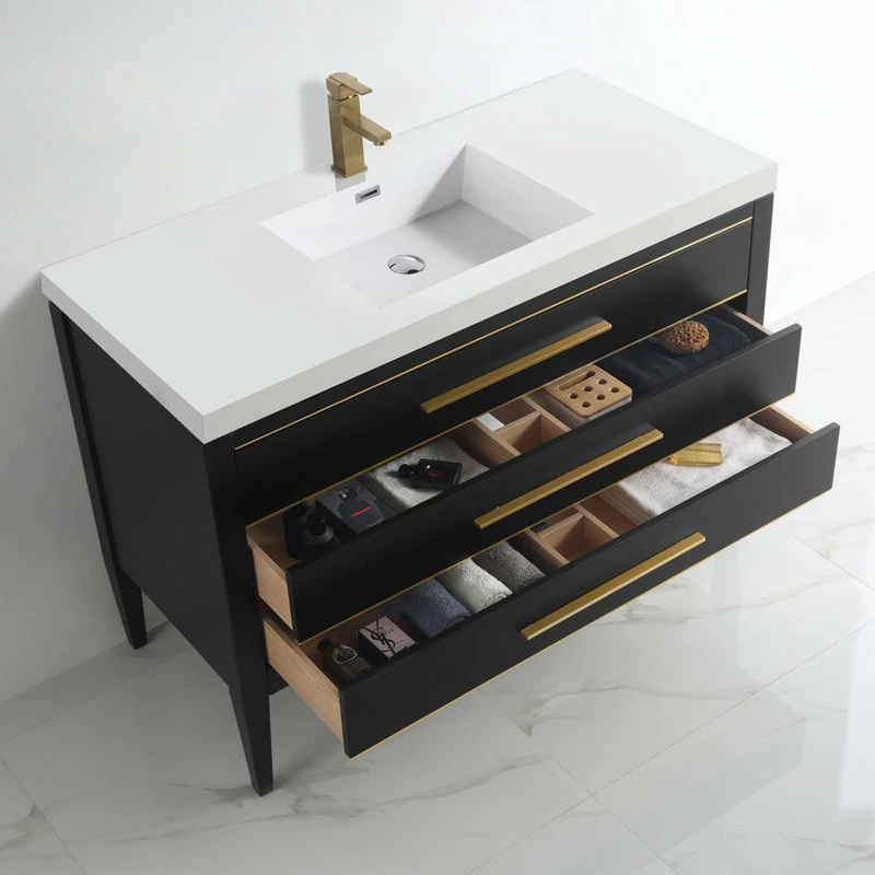 Hot Sale ⌛ Dowell K&B Supplies Grace 48″ Single Bathroom Vanity Set, Black With Brass Trim ✔️