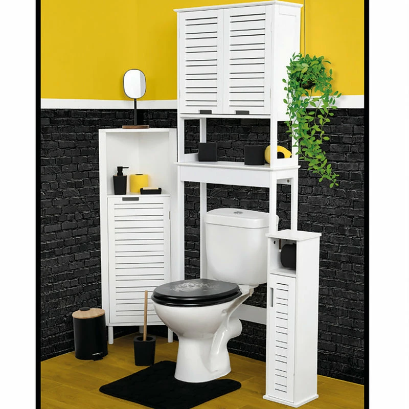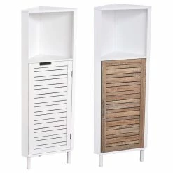 In small-size bathrooms or even in any bathroom, no space should go to waste. This Storage Corner Cabinet Shelf Miami White Wood is the perfect storage solution. Take advantage of every corner of your home and make the best use of limited space with this bathroom furniture. Thanks to its 90 rear right angle, this corner cabinet will stand freely or sit flush against a wall. This tall corner cabinet features one large white-colored louver (opening from left to right) with a U-shape cutout handle and one white shelf inside (height is adjustable-3 positions). Thus, it offers plenty of space for all your bathroom accessories. Also, the white louvered door ensures a good air flow and is magnetized to stay securely closed. The open shelf and the work surface up top help to add some decoration. With its simple and elegant appearance, this item can perfectly match your bathroom, hallway, living room, dining room, kitchen, bedroom, home or office. This wall corner cabinet is ideal for keeping your bathroom essentials right at your fingerprints without sacrificing valuable floor space. Not only perfect to display decorative items or to store toilet paper rolls, towels and Knick knacks . But also ideal for banishing clutter from your bathroom. To sum up, this storage corner cabinet provides an elegant and modern look to any bathroom. Finally, complete your decoration with other products of the same collection Miami. In addition to your cabinet, you can add under sink, floor or over-the-toilet cabinets, toilet paper reserve or tower unit.