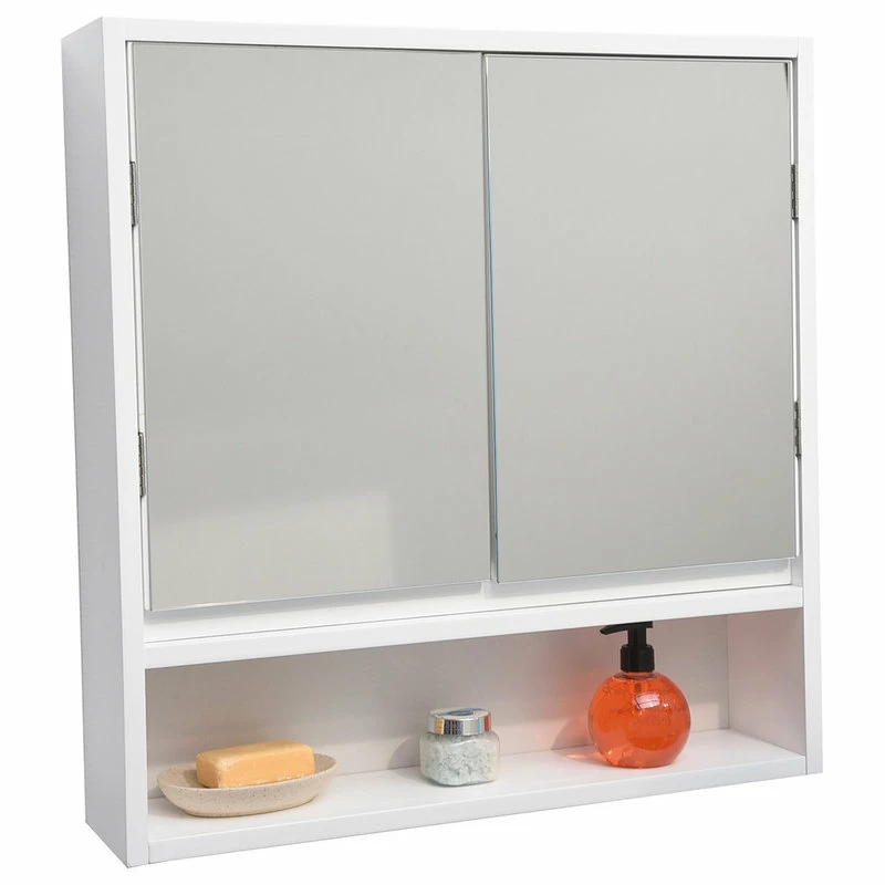 - STURDY CONSTRUCTION : This bathroom Wall Mounted Medicine Cabinet Miami features two mirrored doors mounted to a solid wood frame. Made of white particle board construction with PVC laminate, this cabinet brings stability and security and a float glass mirror ensures a deep, distortion-free, rich reflection to last a lifetime. It helps you to stay organized with a contemporary style and a clean modern look