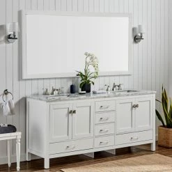 Be the first to review “Budget ๐ Eviva LLC Eviva Aberdeen 84″ White Transitional Double Sink Bathroom Vanity White Carrar โจ” Cancel reply