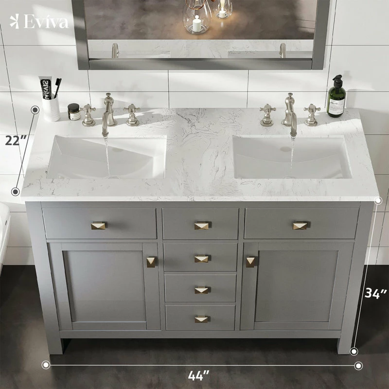 Best reviews of ⌛ Eviva LLC Totti Artemis 44″ Gray Transitional Double Sink Bathroom Vanity 🔥