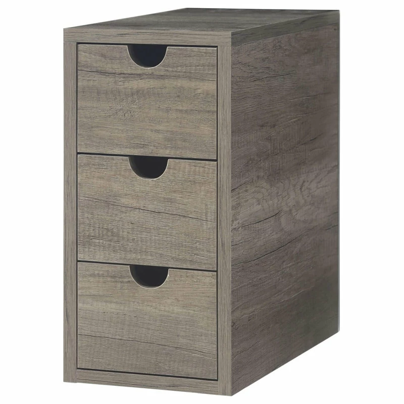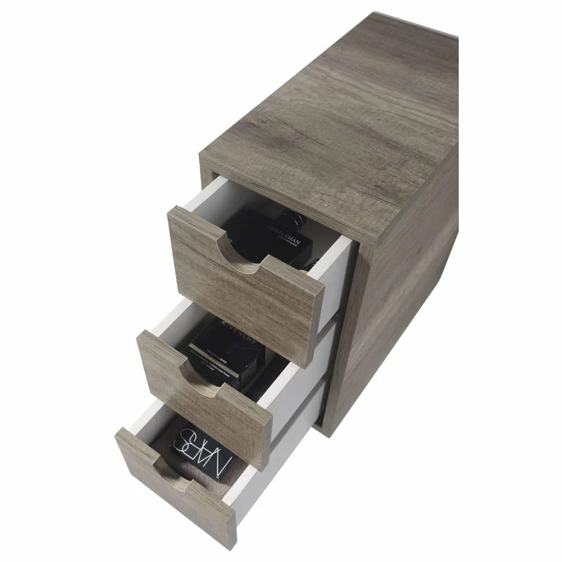 To add functionality without compromising on exterior simplicity, the Shawbridge pull out drawer unit is made of custom matched smoked oak and durable interiors. Vertically presented, the drawers are the perfect size for toiletry accessories, grooming tools and smaller products that would clutter the towel area of its cabinetry. Touch and pull openings are included so that the design doesn’t interfere with the door unit.