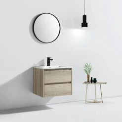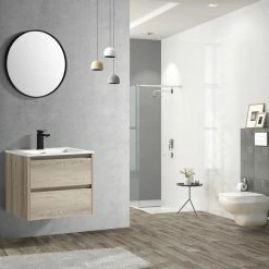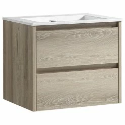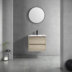 Create a sleek and modern bathroom space with The Marlow, a refined nod to Minimalistic design, is a timeless piece of furniture that gives a pure and elegant charm to your bathroom space. This floating vanity adds crisp European flair and sophistication through its vibrant textured oak wood-grain finish. The soft-closing dual drawers make storage effortless and elegant. U-shape drawer cut out to allow room for plumbing. Available in a choice of “Kye” (Grey/Brown walnut hues) or “Liv” (Blonde Light Oak hues), The Marlow will add just the right touch of effective style and simplicity to your bathroom.