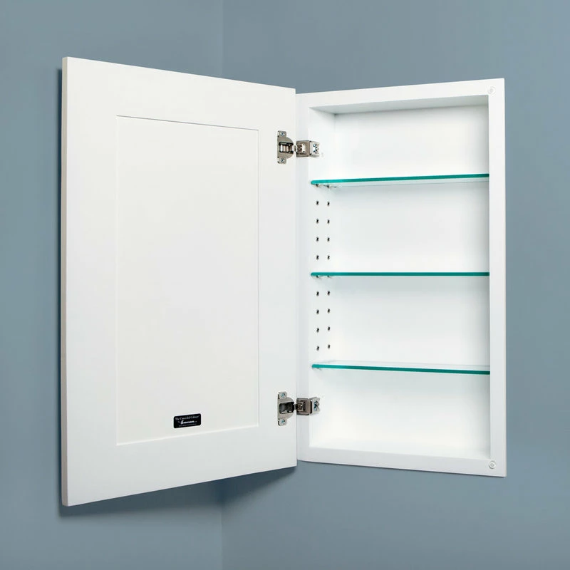 Our Shaker Style Recessed Medicine Cabinet features a beautiful shaker style cabinet door made from solid alder wood, available painted a bright stunning white or left unfinished and available with a plain center or beadboard center. Open it to reveal beautiful, functional, hidden storage. See below for all dimensions. (Please note: We also sell picture frame medicine cabinets in a wide variety of finishes, a surface-mount picture frame medicine cabinet, and some other beautifully handcrafted wall storage. Please check our other listings to see our full selection.)