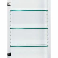 - Regular includes 2 high quality beveled glass shelves adjustable to 5 different heights