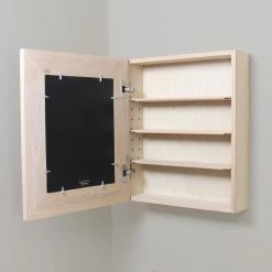 The Picture Perfect Medicine Cabinet features our picture frame doors on a wall-mount medicine cabinet. Comes in in White, Shaker White, Espresso, Black, Coffee Bean, Unfinished Flat Frame, and Caramel. Mounts on your wall in minutes and holds up to 11″ x 14″ artwork from your personal collection. Cabinet measures 16 7/8″ W x 19 7/8″ H x 5 1/8″ D.