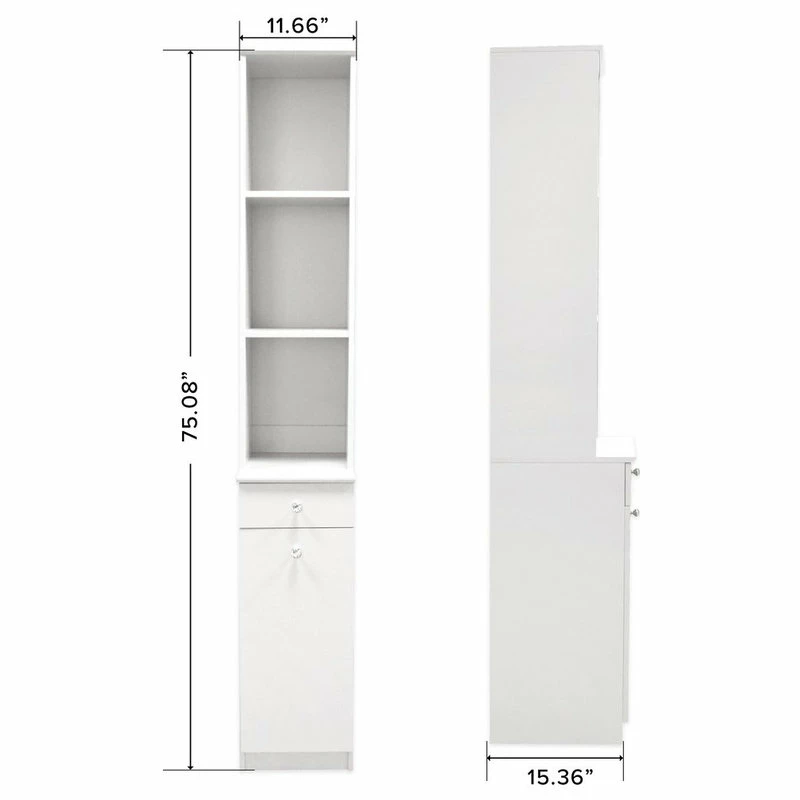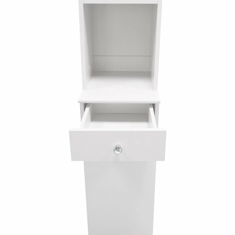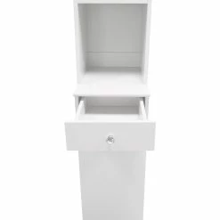 Classic details including optimum space and crystal knobs give the innovative Slaystationยฎ Storage Cabinet timeless appeal. Three luxury shelves to display your most cherished items rests on a plinth cabinet base. Designed to pair with any Impressions Vanity piece, it creates a glam space that is both functional and stunning.