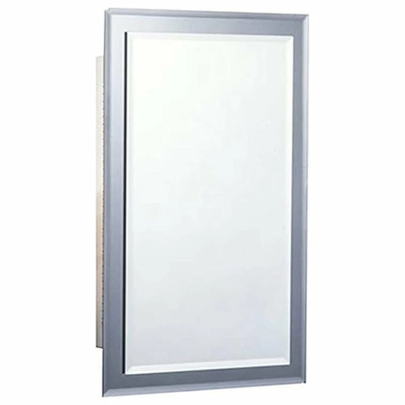 Jensen 16″ x 26″ recessed metal medicine cabinet with a frameless beveled mirror door and 2 adjustable plastic shelves. Ideal for commercial, military, and residential applications. Featuring a reversible door for left- or right-hand opening installations. The shelves are adjustable for optimal flexibility.