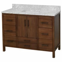 - Double-thick authentic Carrara marble countertop imported from Italy (pre-installed on the cabinet).