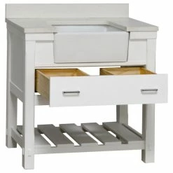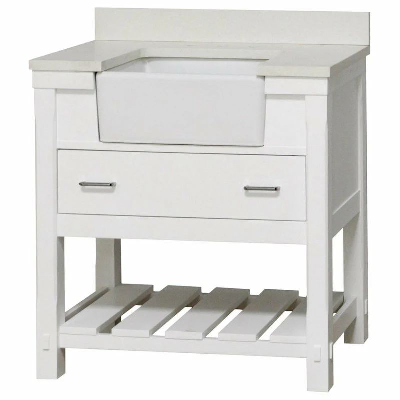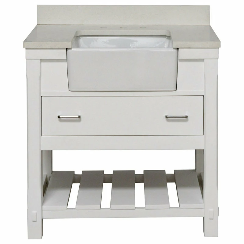 - White farmhouse apron sink (comes pre-installed on the vanity)