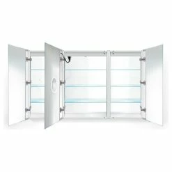 Open the lighted section cabinet to reveal the full suite of amenities. In the mirrored door, a 3x magnified, LED-lit mirror is perfect for detailed makeup application. The mirrored interior is illuminated automatically for a luxurious touch. Our wide-angle hinges provide freedom of motion and panorama. The 2+2 smart outlet contains two traditional outlets and two USB interfaces to keep beauty tools, as well as a smartphone or tablet, close at hand. We ensure reliable optical clarity with active defogging technology. This LED Medicine Cabinet is limited only by your imagination.