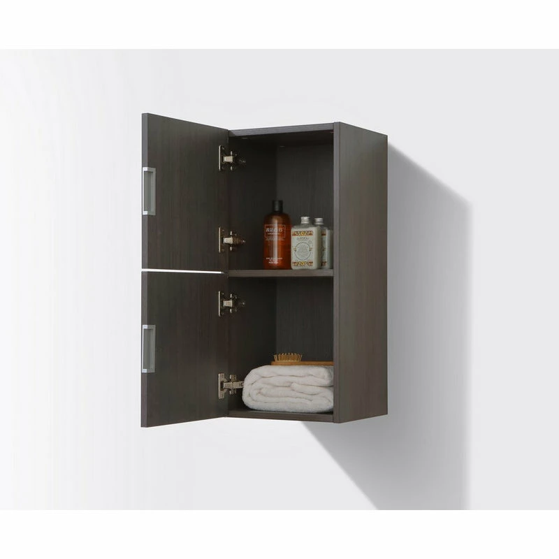 - Bliss 12″ Wide by 24″ High Linen Side Cabinet With Two Doors in Gray Oak Finish.
