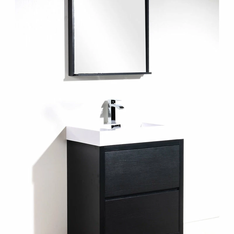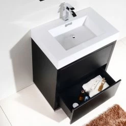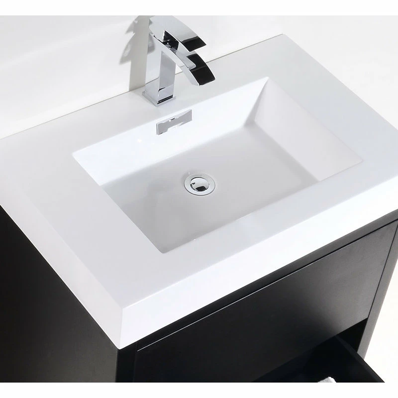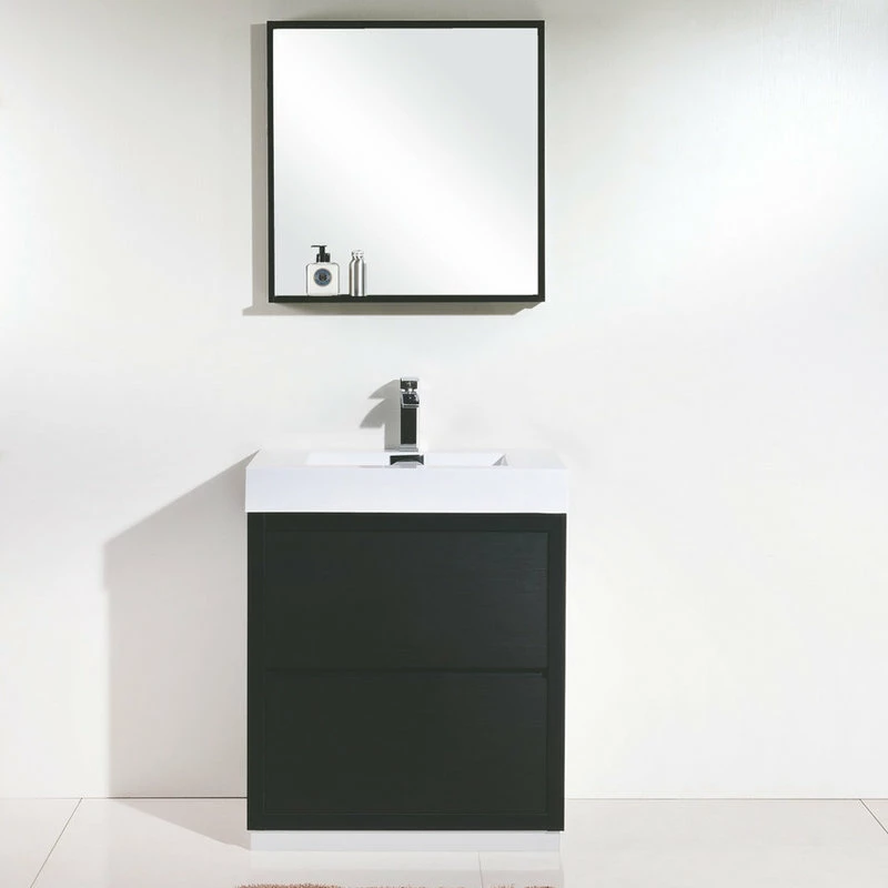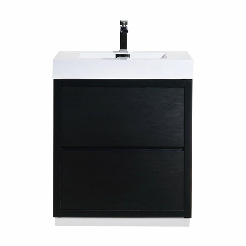 The Bliss is one of the most elegant modern Bathroom Vanities around. This 30 Inch model comes with a reinforced Acrylic composite sink, Marine Veneer Wood Constructed Console that is fully moisture and water proof, with high quality European Hardware that provides easy click, Push-Open drawers.