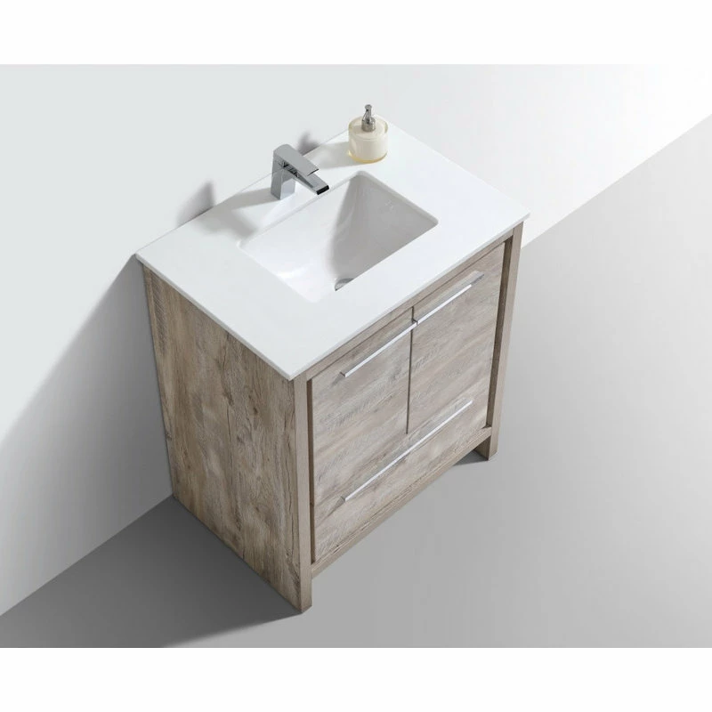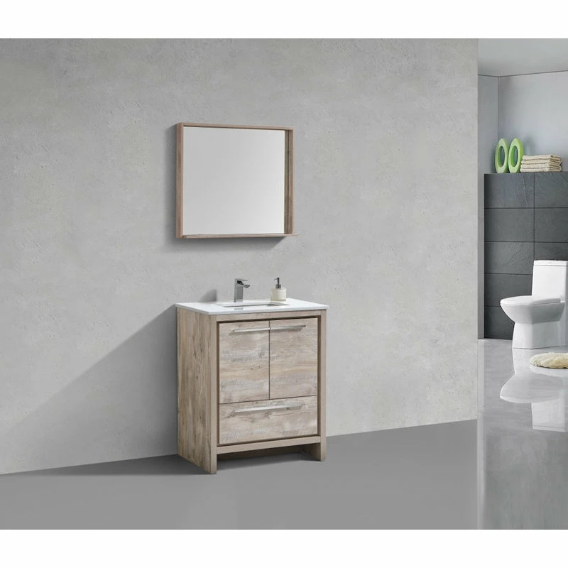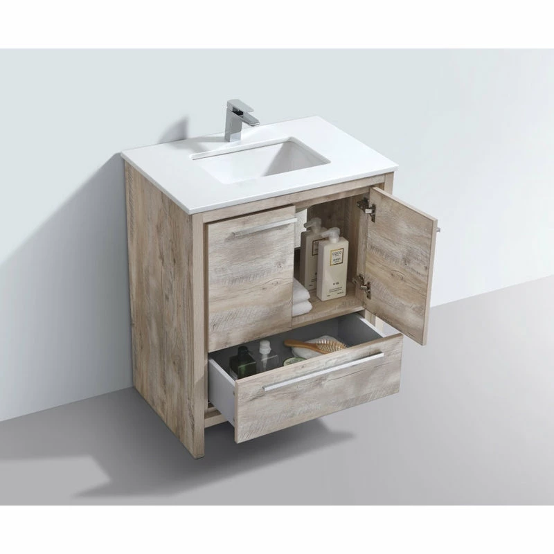 The Dolce Vanity by KubeBath is one of the most elegant modern Bathroom Vanities around.This 30 Inch model comes with a durable pure white Quartz Countertop and features two Doors and one Drawer with high quality European Hardware, that provides smooth soft-closing operation. KubeBath Vanities come fully assembled and ready for Installation.