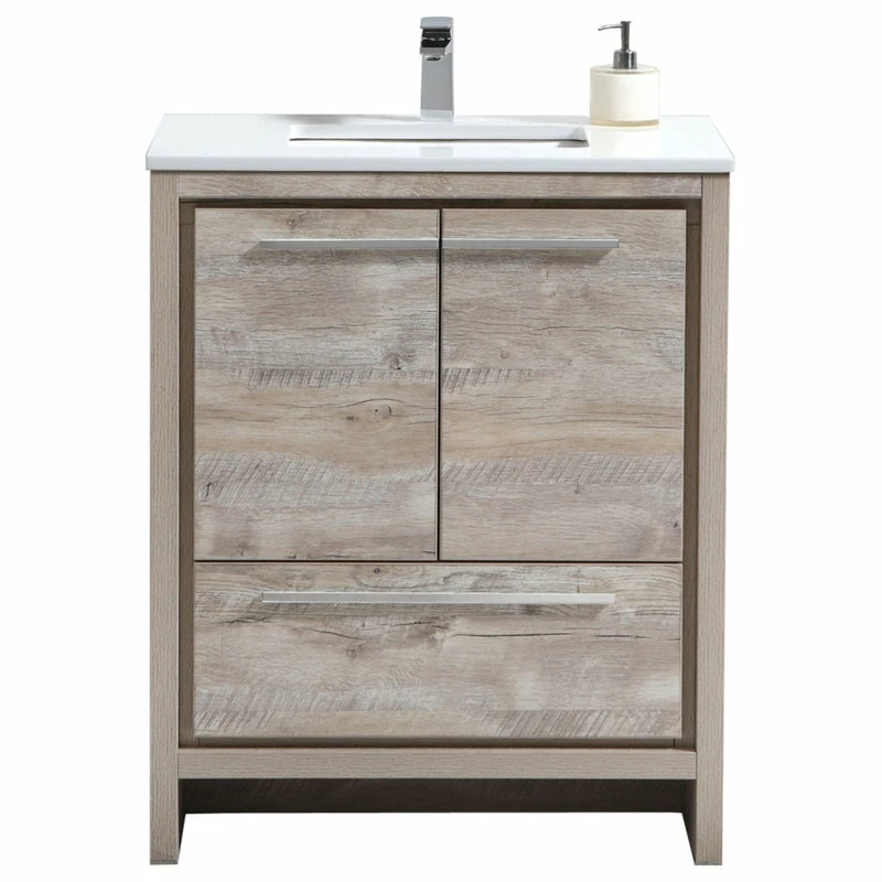 Buy ✨ KubeBath Dolce 30″ Bathroom Vanity, White Quartz Countertop, Nature Wood 😍