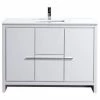The Dolce Vanity by KubeBath is one of the most elegant modern Bathroom Vanities around. This 48 Inch Double Sink model comes with a durable pure white Quartz Countertop and features two Doors and two Drawers with high quality European Hardware, that provides smooth soft-closing operation. Top Drawer features push-open operation.