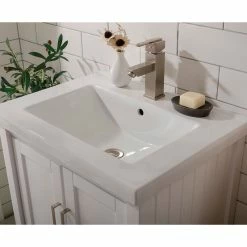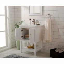 Add big style and plenty of function to your compact powder room with the Colby. This single-sink vanity features a handy integrated sink top and a fashionable mix of open and concealed storage, giving you the option to keep your bathroom essentials neatly tucked away or on display. The Colby’s white finish and brushed hardware offer an extra dose of fresh style that goes a long way in your smaller space.